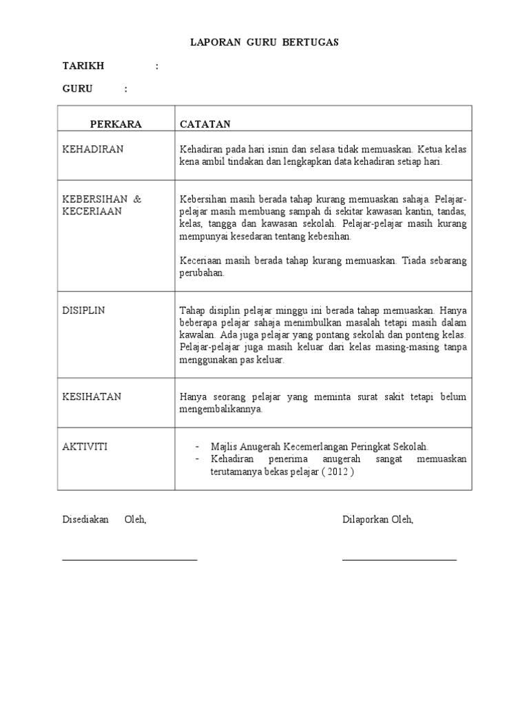 Format Laporan Guru Bertugas Pdf