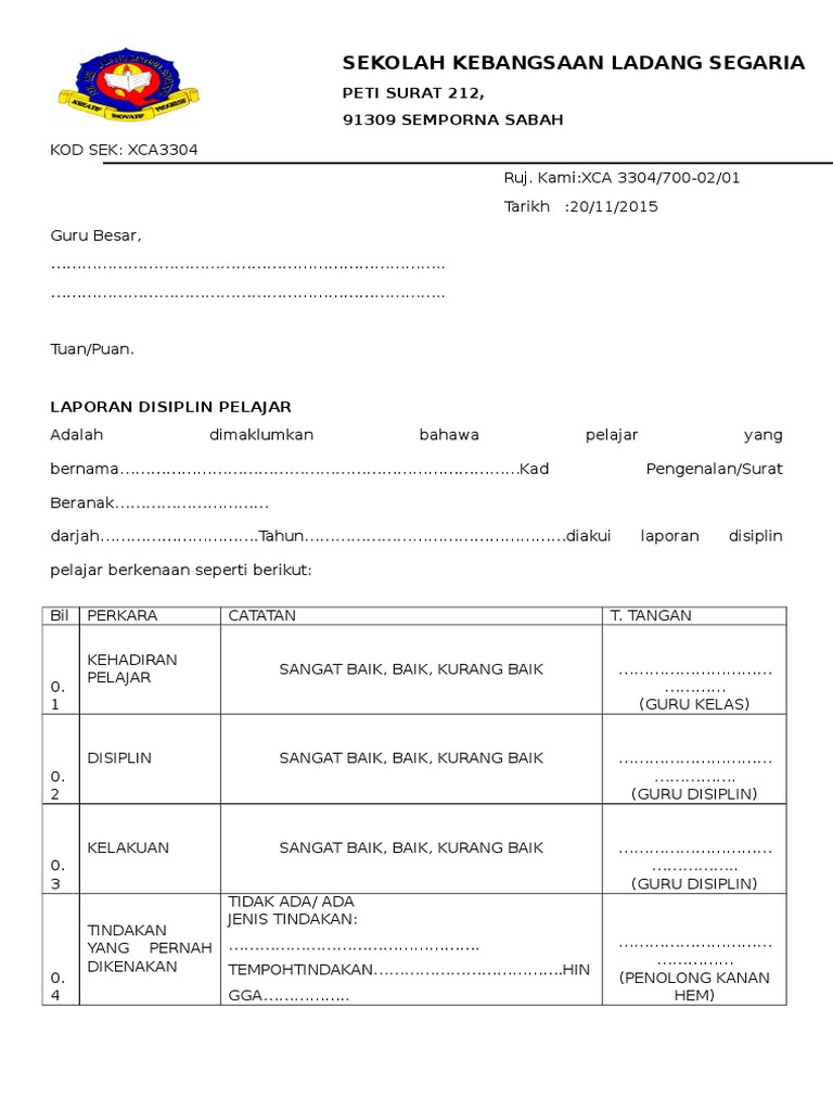 N ama pelajar yang melanggar disiplin 2. Hargai Kami Share Pada Rakan Anda. Contoh laporan disiplin pelajar.